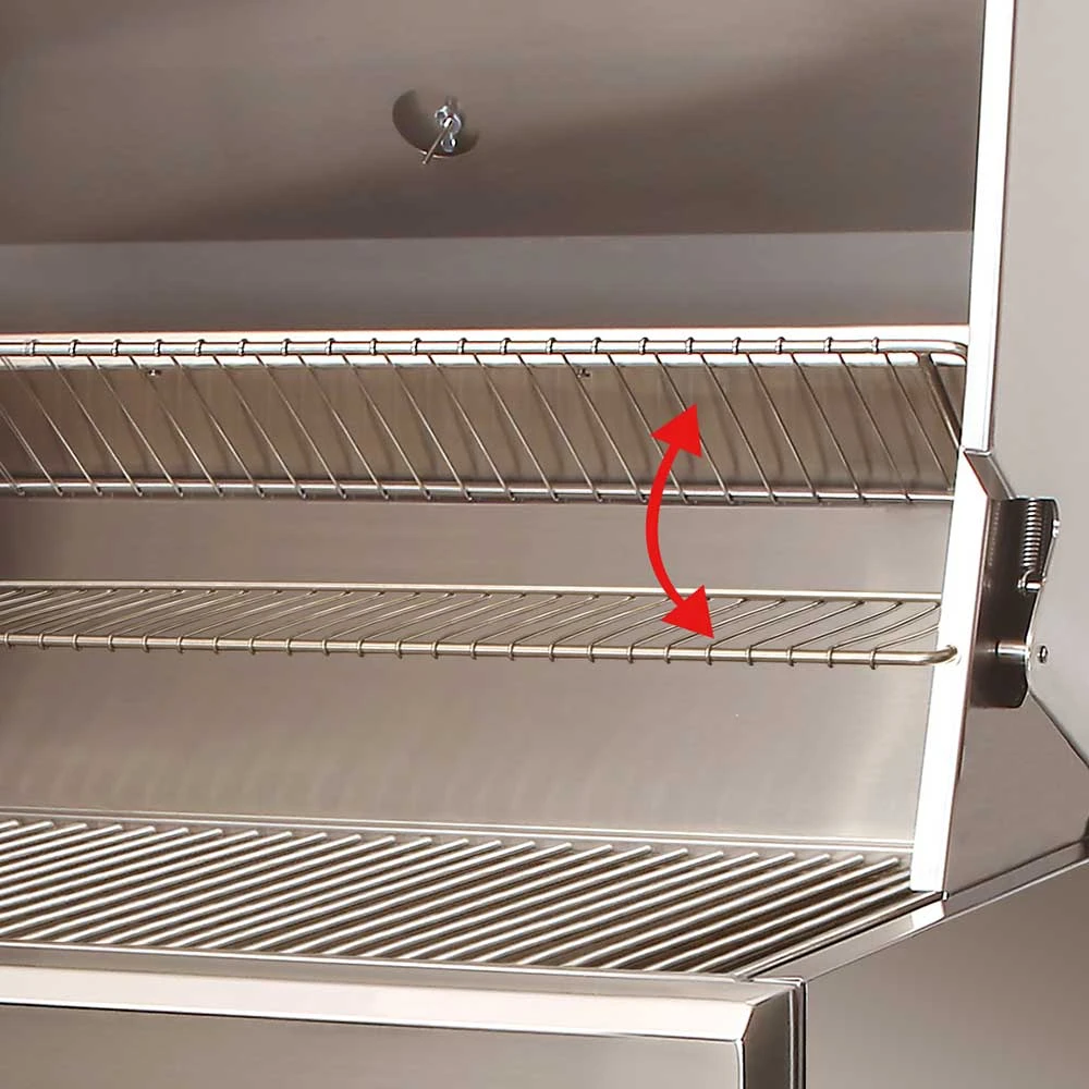 The Artisan AAEP-26-LP offers an impressive array of features, the Artisan American Eagle Series provides a luxury experience at an affordable price. Made in the USA from 304 stainless steel, the 26-Inch AAEP-26-LP built-in propane gas grill features a seamless welded double-walled hood for exceptional heat retention, as well as a full-length handle and an easy-open spring-assisted system. Two stainless steel tube U-burners each produce 20,000 BTUs, which evenly distribute high heat across the cooking surface. Electrical wires and connectors are encapsulated with heat-resistant silicone, making the 9v electrical ignition system fast and reliable, while the fully-adjustable brass valves ensure precision flame control. The AAEP-26-LP stainless steel cooking grates are durable and easy to clean, and the dual-position warming rack lifts up and out of the way when not in use for additional workspace. Providing protection from the elements and helping maintain the beauty of your grill, the control panel is recessed, keeping chrome knobs and switches out of the way. Experience more comfortable grilling with the unique Artisan air curtain chimney design, which keeps controls cool to the touch, even with the lid closed. A built-in hood thermometer displays accurate temperatures for easy oven roasting.
