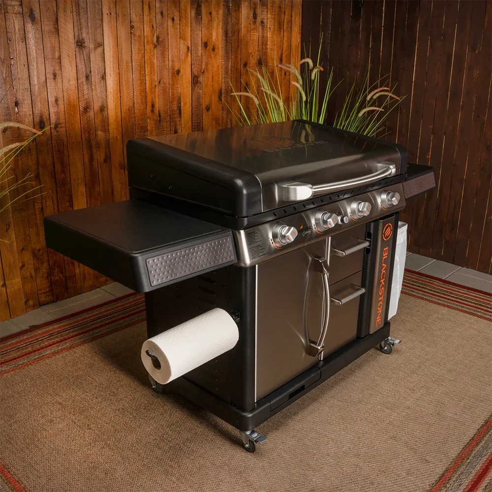 With four independently controlled burners, the Blackstone 36″ Griddle Cooking Station pushes out a collective 60,000 BTUs and gives you all the cooking power needed to be the chef you want. Plus, this unit will look beautiful in your backyard as it hides the propane tank and gives you plenty of storage space for all your cooking accessories.