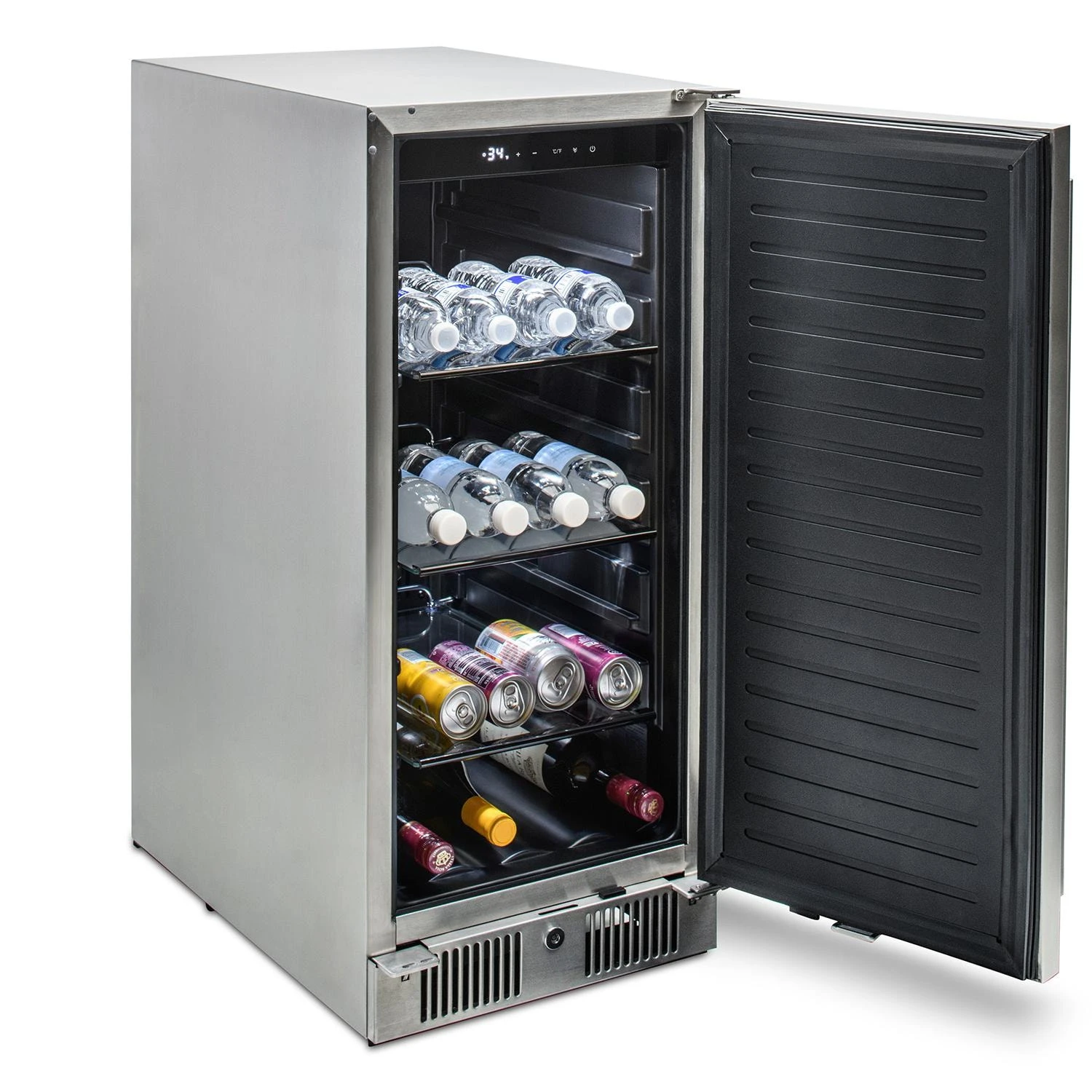 This Blaze 15-Inch Outdoor Refrigerator features a slim design for small spaces and lends a sleek look no matter the setting. Despite its space-saving design, this low-profile fridge can still hold up to 74 cans of your favorite beverages! White LED lighting, meanwhile, ensures you can find your favorite drinks, day or night. To top it all off, the heavy-duty, 304-grade stainless steel construction and 1-year limited warranty give you confidence in your new outdoor appliance.