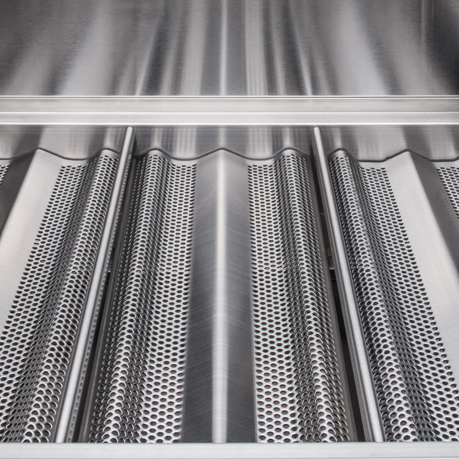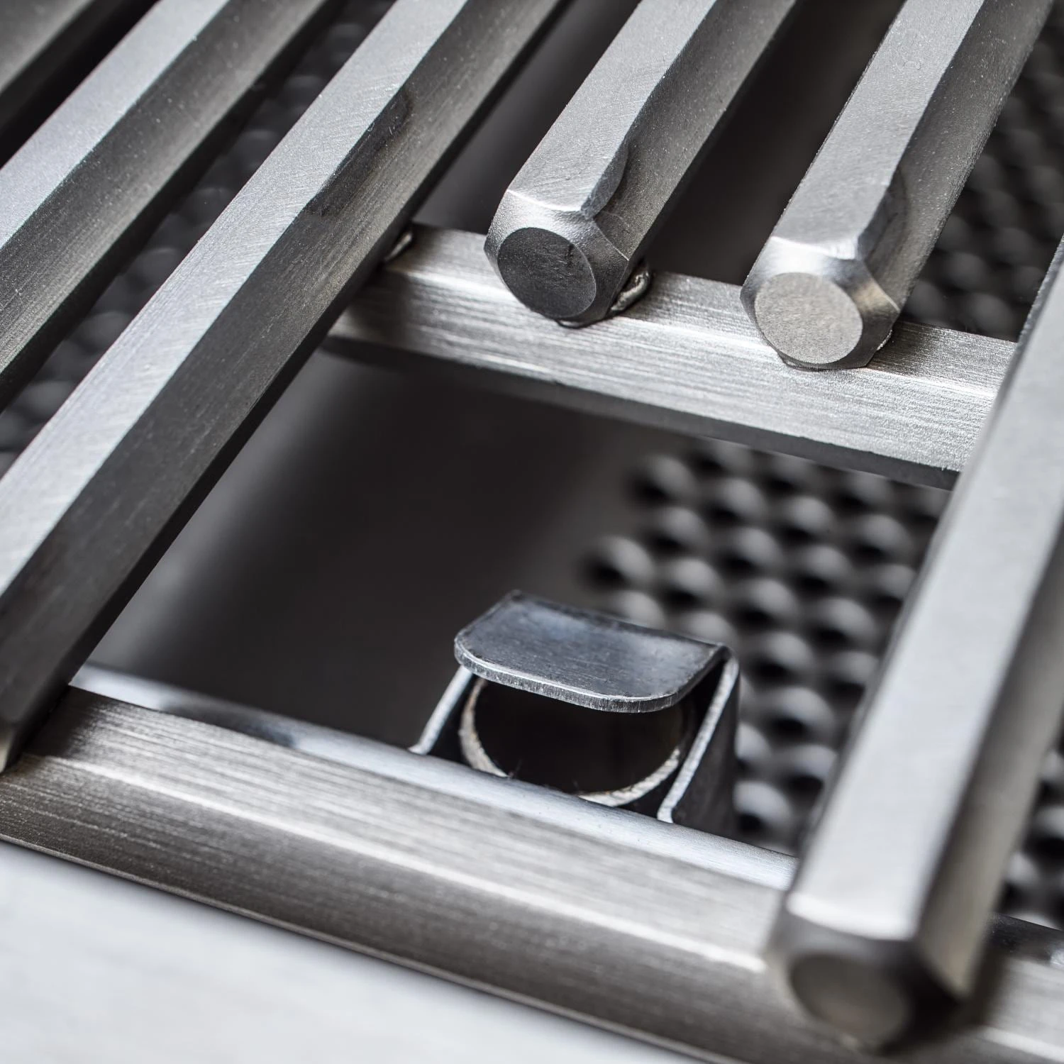 The finest in outdoor cooking just got better with high-performance, industry leading heavy-gauge materials and commercial quality craftsmanship in the Blaze Professional. The Blaze (BLZ-4PRO-NG + BLZ-4PRO-CART) 44-inch freestanding gas grill comes with four commercial quality, cast stainless steel H-burners provide up to 18,000 BTUs each for a total of 72,000 BTUs to provide an effective cooking system. The heavy-duty 12mm hexagon, stainless steel cooking rods helps you achieve extraordinary searing temperatures, maximizes the durability of this grill and provides 797 square inches of main grilling area. Slow-roast delicious meat or fruit using the 10,000 BTU infrared rear burner and included rotisserie kit with waterproof motor for grilling versatility, and when you are done, you can store the rotisserie rod behind the grill on the storage hooks. The removable 253 square inch warming rack is an ideal place to keep bread and other food heated while you grill. Push and turn flame-thrower primary ignition and backup flash tube secondary ignitions for each burner ensure a steady, reliable flame with every start. The stainless steel heat zone separators allow for different cooking zones across the grilling surface and helps eliminate wasting heat and fuel. This adds to your grilling experience, creating separate zones that can be used for different styles of cooking. The extra-thick flame stabilizing grids minimize flare-ups and the full-width, roll-out drip tray and removable baffles make cleaning a breeze. Interior grill lights along with the signature red LED knob illumination system help you grill and entertain at night. The double-lined, 304 stainless steel grill hood is designed to protect the outer layer from heat discoloration and retain heat. The stainless steel grill cart ensures long-lasting durability for years of outdoor use and the four heavy-duty, locking wheels allow you to easily relocate the grill. The two stainless steel side provide a convenient work area while you cook and fold down to save space while not in use. The cart also features two drawers and one door, all with rounded handles, to store your BBQ accessories. Please note that a 110V power source is required. This product is ETL certified with an ANSI Z21.58-2018/CSA 1.6 rating.