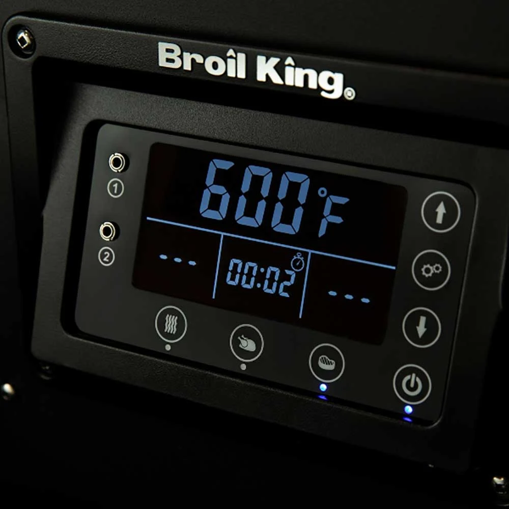 The Broil King Crown Pellet 400 (493051) is the most innovative pellet grill on the market that gives you incredible cooking precision. The Broil King 493051 Crown Pellet grill is constructed of 1.5mm, 16-gauge steel with a black high-heat paint finish and offers 635 sq. inches of overall cooking surface, suitable for any size cookout. The thick steel cooking chamber has heavy-duty cast iron cooking grids and a porcelain coated warming rack, perfect for achieving those steakhouse quality sear marks. With the Wi-Fi and Bluetooth enabled the digital interface and two electronic meat probes you can monitor your grill and food via your phone from just about anywhere using the Broil King Pellet Grilling App. The powerful auger automatically moves the pellets from the 18 lb. capacity hopper to the firebox to accurately maintain set temperatures. Cleaning up is a breeze with the removable stainless steel drip tray and a removable ash collector. The grill is supported by four steel legs with two leg levelers and two large, crack-proof wheels. A durable steel bottom shelf provides storage space for pellets and grilling tools.