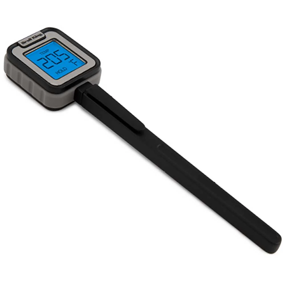 With the Broil King Instant Read Thermometer (61825) you’ll receive quick and instant temperature level readouts with a beautiful blue backlit screen to see during nighttime grill and a fine tip probe to pierce even the most rugged of meats. Everything a backyard chef needs, compact and reliable. Battery included. Temperature range approximately -50C +300C (-58F +572F).