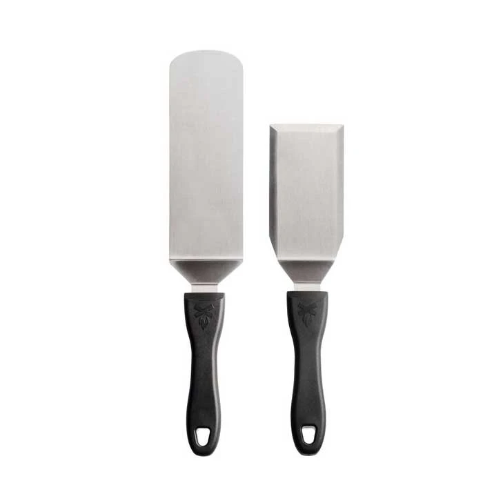 Combining some simple elements, the professional spatula set simplifies the experience of cooking outdoors. This set contains both a deluxe pancake flipper and a heavy duty turner/scraper. The beveled edges and long blades get under your food much easier than a standard spatula. Also, blades made from a flexible stainless steel greatly extends the lifetime of these cooking essentials.