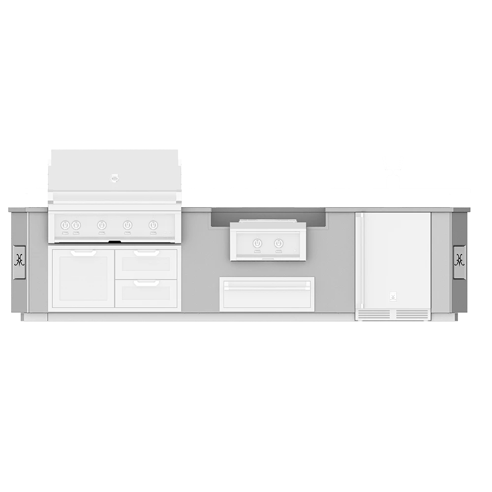 The ultimate in luxury, the Hestan Outdoor Living Suite with Power Burner offers an install-friendly upgrade with cutouts for a grill, power burner, storage and undercounter refrigeration. Heavy-gauge, welded body construction and stainless steel front, sides and bottom weathers the elements in style. It comes equipped with weatherproof outlets and single-point gas and electrical connections to streamline fuel and power for all of your Hestan Outdoor products. 12-foot Outdoor Living Suite with Power Burner consists of multiple cutouts (appliances sold separately) in a suite to accommodate: 42-inch Hestan Built-in Grill, 42-inch Hestan Access Door or Drawer/Door Cabinet, 24-inch Hestan Power Burner, 30-inch Hestan Storage Drawer, 24-inch Hestan Refrigeration Product. Fully welded 1-piece stainless countertop.