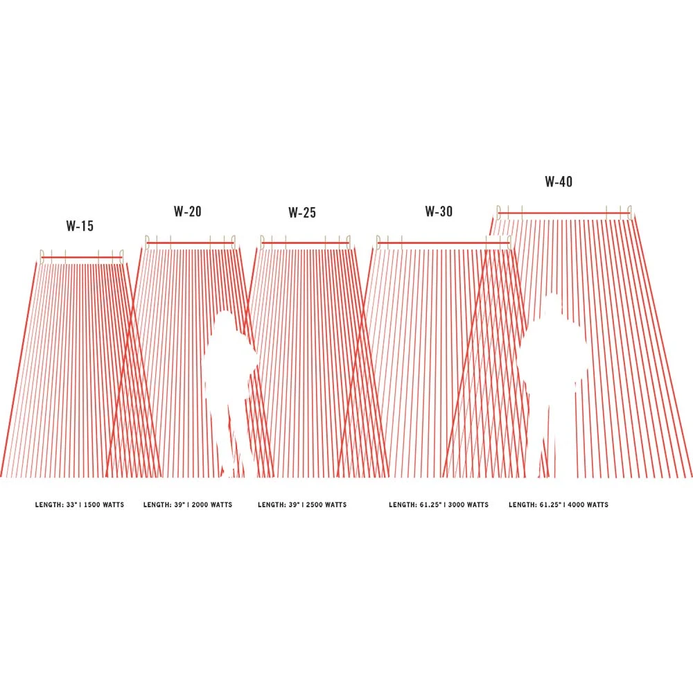 Infratech heating systems offer ambient, electric comfort heat for outdoor spaces. Their classic W-Series fixtures are ideal for most basic installations. With a variety of sizes to choose from, it is important to select the proper W-Series single element heater in order to provide the coverage and intensity necessary for optimum comfort. Some home or business owners may need to use multiple heaters, in order to completely cover large areas.