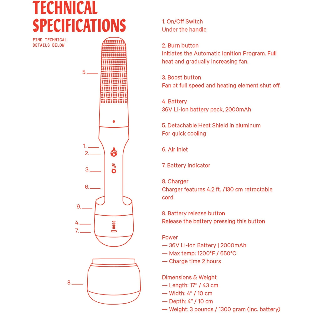 Behold the sophisticated older brother of The Original Looftlighter – Looftlighter X, the hottest charcoal lighter on the market. The Looftlighter X Battery Powered charcoal lighter gives you the same efficiency of the Original Looftlighter, but with the ease of being cordless, utilizing 36 volts of lithium-ion technology. One full charge of the Looftlighter X will last up to 10 uses and a full charge takes roughly 2 hours. Use it in the backyard, on your balcony, tailgating, outdoors and indoors. The Looftlighter X is fast – like seriously fast! A Looft Lighter X can reach temperatures of 1200 degrees and gets your charcoal ignited in under 60 seconds. The Looft Lighter X is safe – no gas, no flame, no smell, and no lighter fluids means that you rule the fire with nothing more than super-heated air. The Looftlighter X is clean – with a Looft Lighter X there’s no CO2 emissions and no toxic chemicals. Lighter fluid is a distant smelly memory. The Looftlighter X versatile design makes it perfect for your backyard charcoal grill, a wood-fired pizza oven, fireplace logs (indoor or outdoor), and charcoal briquettes. With the Looft Lighter X, you’ll get that perfect glow smoldering in no time. To use the Looft Lighter X simply place the tip of the Looftlighter X into a pile of fuel of your choice (charcoal, wood chips or logs), keep the Looftlighter X in the same spot for 60 seconds, when sparks or a glow appear, pull back a few inches and let it sit for roughly 60 more seconds, your fuel is now hot and ready to go. It’s that simple!