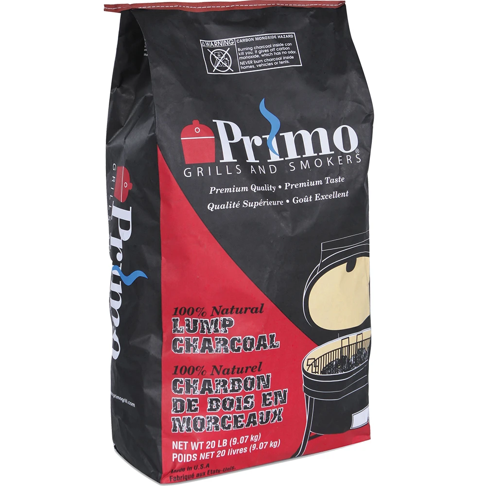Primo 100 percent all-natural lump charcoal (608) is the premium choice fuel for grills and smokers. This environmentally-friendly special blend of charcoal is free of tars and other harmful chemicals. It lights faster, burns hotter and longer, and produces less ash than traditional briquette style charcoal. When using this Primo All-Natural Lump Charcoal with your Primo Kamado Style Grill, a single load can be reused multiple times when cooking low and slow, and it can burn for up to 36 hours! Add even more flavor by combining with your favorite seasoned wood chips or chunks like mesquite, apple, and hickory. For best results in flavor and quality, use Primo Natural Lump Charcoal with your Primo Ceramic Kamado Style Grill and Smoker.