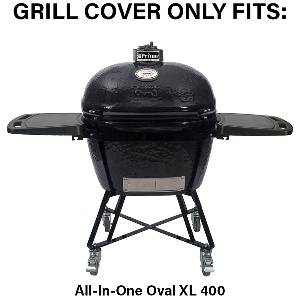Protect your Primo All-In-One Oval XL 400 Grill with a heavy-duty grill cover (409) made from premium materials. Crack-resistant, 2-ply UV protected 300D polyester vinyl ensures that your Primo Oval XL 400 All-In-One grill will be protected year-round from the elements. Custom measured stretch-band security creates a wind-resistant cover, allowing your grill to be protected even in high-wind areas. When it comes to protecting your Primo Oval XL 400 All-In-One grill from the outdoor elements, never worry with this premium grill cover (409).