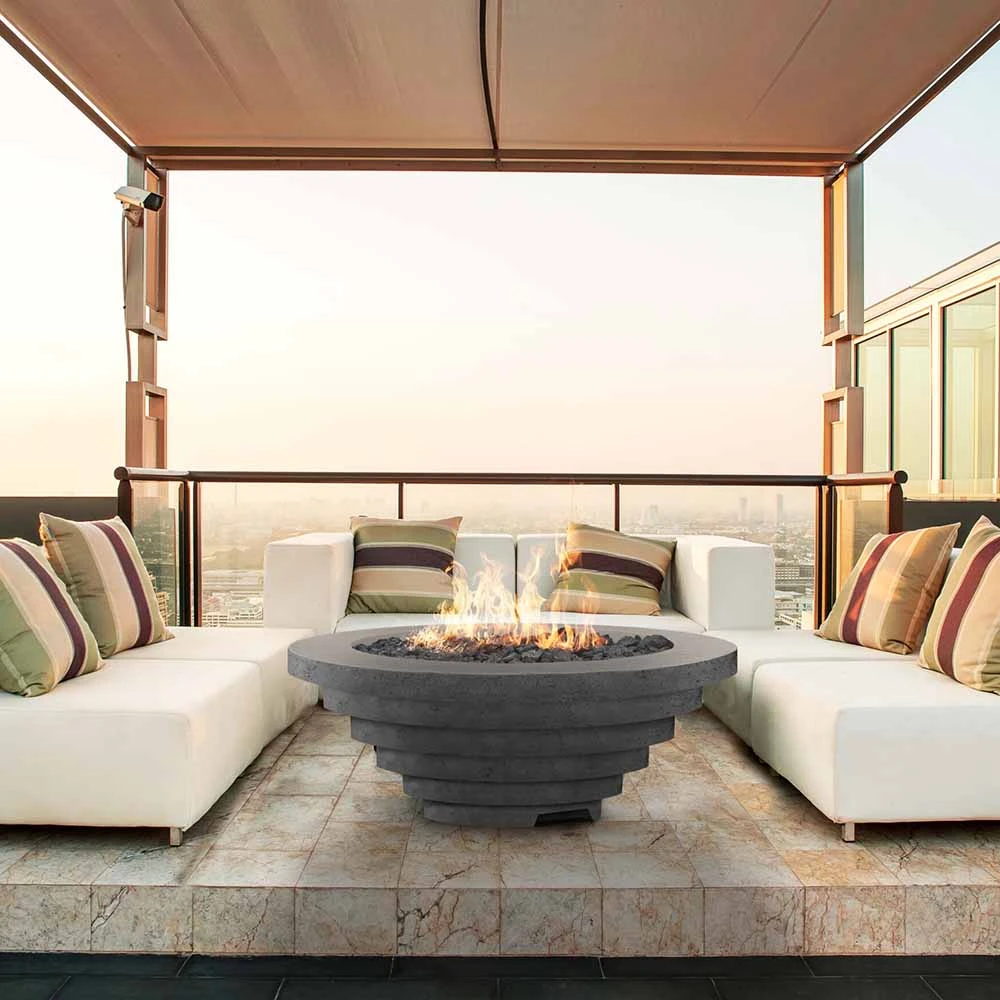 The Triton fire bowl provides an outdoor retreat of warmth and ambiance with a unique layered design. Each bowl has been hand-crafted using our custom patina finishing process, guaranteeing a one-of-a-kind creation with subtle variation. The 48 diameter bowl provides a beautiful and functional centerpiece for any backyard, patio or lounging area. The ambient heat provides plenty of warmth for multiple people. The 65,000 BTU unit operates with a Natural Gas hookup. The key valve housing is easily accessed from the side of the unit. The controls are clearly labeled and simple to use. Turn the key to the on position and use a match lighter to light and enjoy. The fire pit comes complete with one 54lb bag of 3/4-inch lava rock. The naturally occurring volcanic rock creates a stunning contrast to the beautiful flames of any gas fire feature while the lava rock is heat resistant.