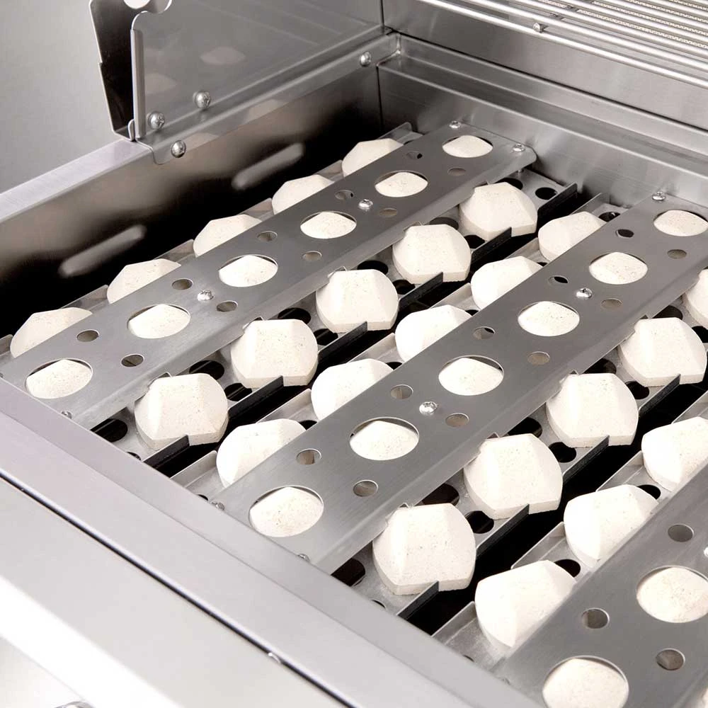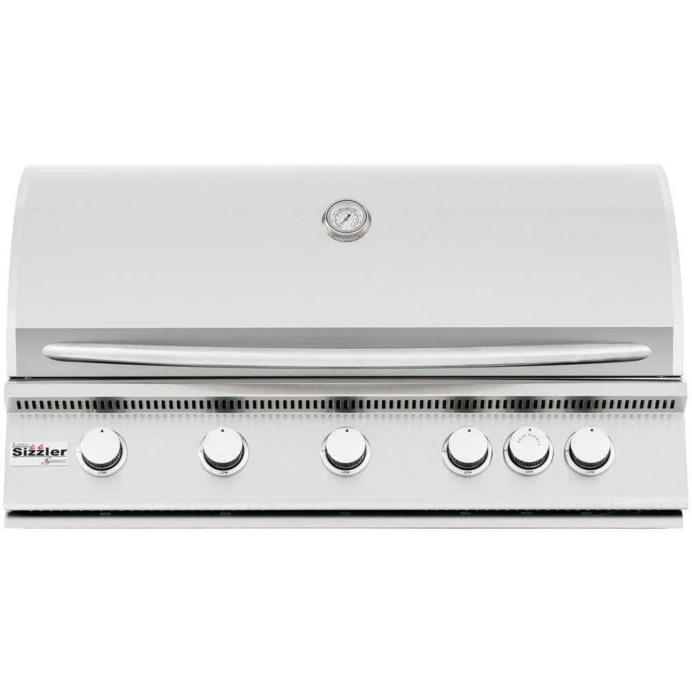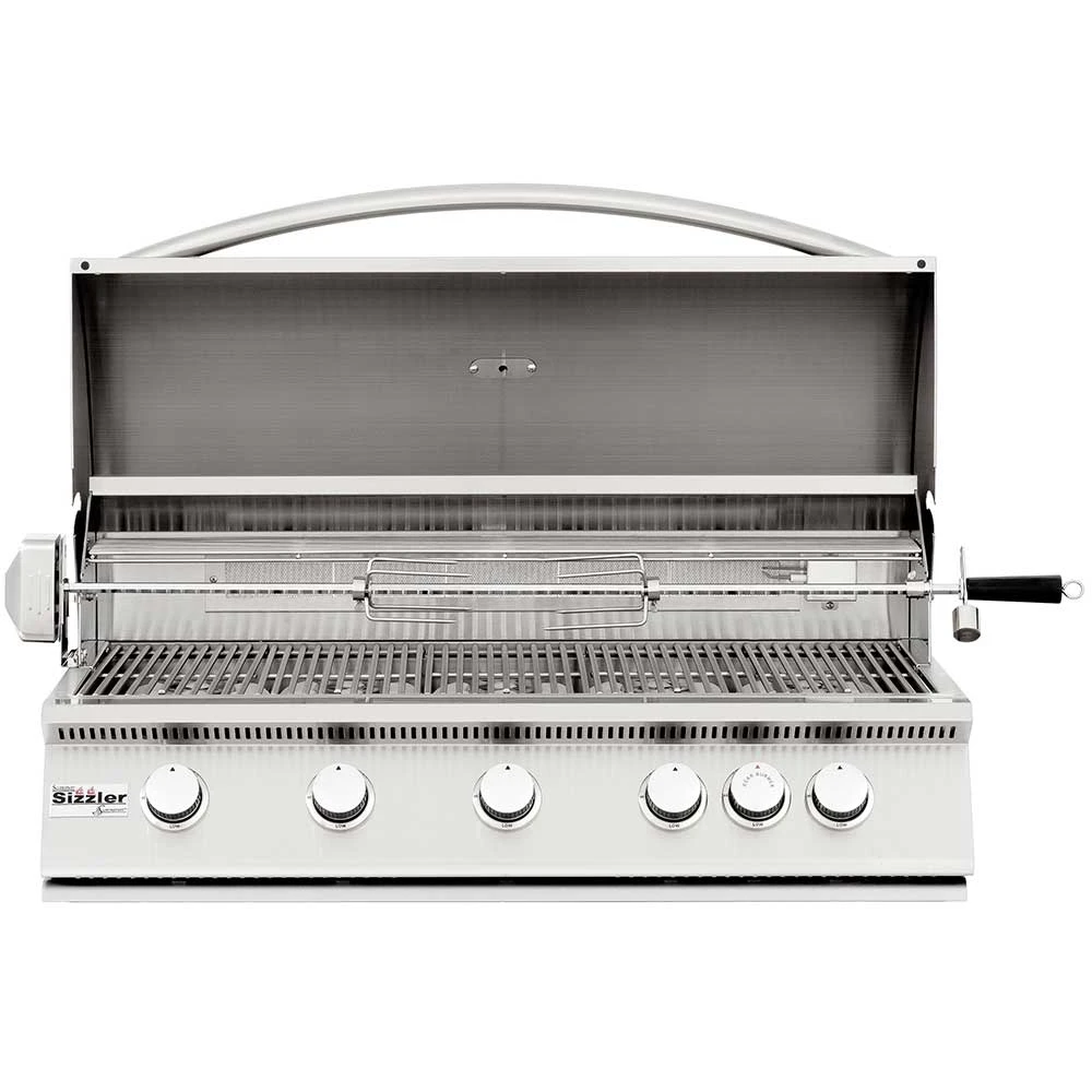 Quality you can afford. The Summerset Grills Sizzler Series (SIZ40-NG) 40-Inch Built-In Natural Gas Grill is a premium gas grill at an unbeatable price. Constructed in all commercial-grade stainless steel and designed with careful precision to ensure optimal airflow and even heating, the Summerset Grills SIZ40-NG gives its higher-priced competitors a run for their money in both durability and grilling performance. The Summerset Sizzler grill will impress the most discriminating of grillers. The Summerset Grills Sizzler Series 40-inch natural gas BBQ grill (SIZ40-NG) features five(5) stainless steel burners, for 60,000 BTUs of total cooking power. The 40-Inch Summerset Sizzler grill offers a 15,000 BTU ceramic rear rotisserie burner that expands cooking options, allowing you to slow roast poultry and other meats (rotisserie kit is optional). The SIZ40-NG Summerset Grill also features an easy-clean briquette system, which helps reduce flare-ups and ensures the grill has even heating across the grilling surface. Reliable startup every time, with the Sure-Strike ignition system. Backup flash tubes, with cross over tubes between burners, allow for one burner to easily light off the other. Large, easy to turn control knobs with rubber grips make operation simple. A stainless steel warming rack keeps freshly grilled meals ready for eating, and the full drip tray makes cleanup effortless. With 683 square inches of primary and 202 square inches of secondary, this large 985 square inches of the overall cooking surface is perfect for grilling for a large party.