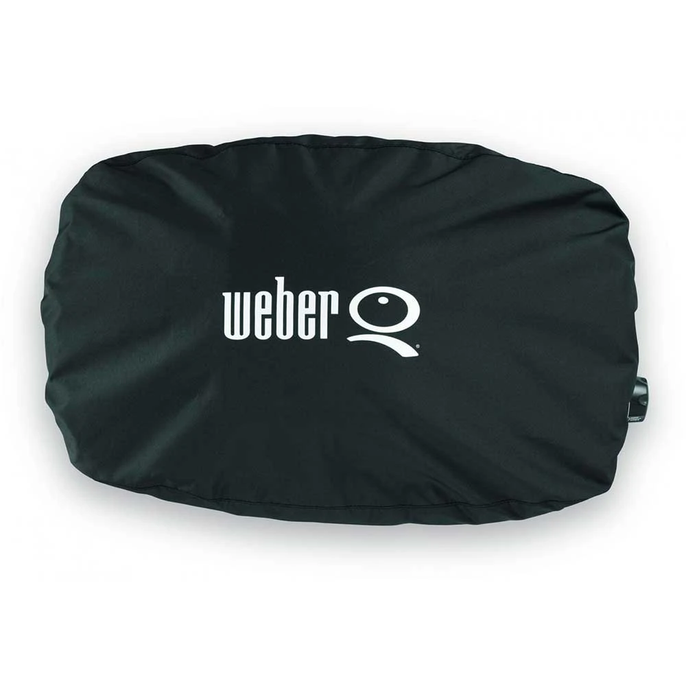 This grill cover is made from all-weather polyester that is waterproof and UV resistant. It includes velcro straps to secure it to the grill, preventing the cover from blowing away. Designed for use with Weber Q 200 & 2000 series gas grills.