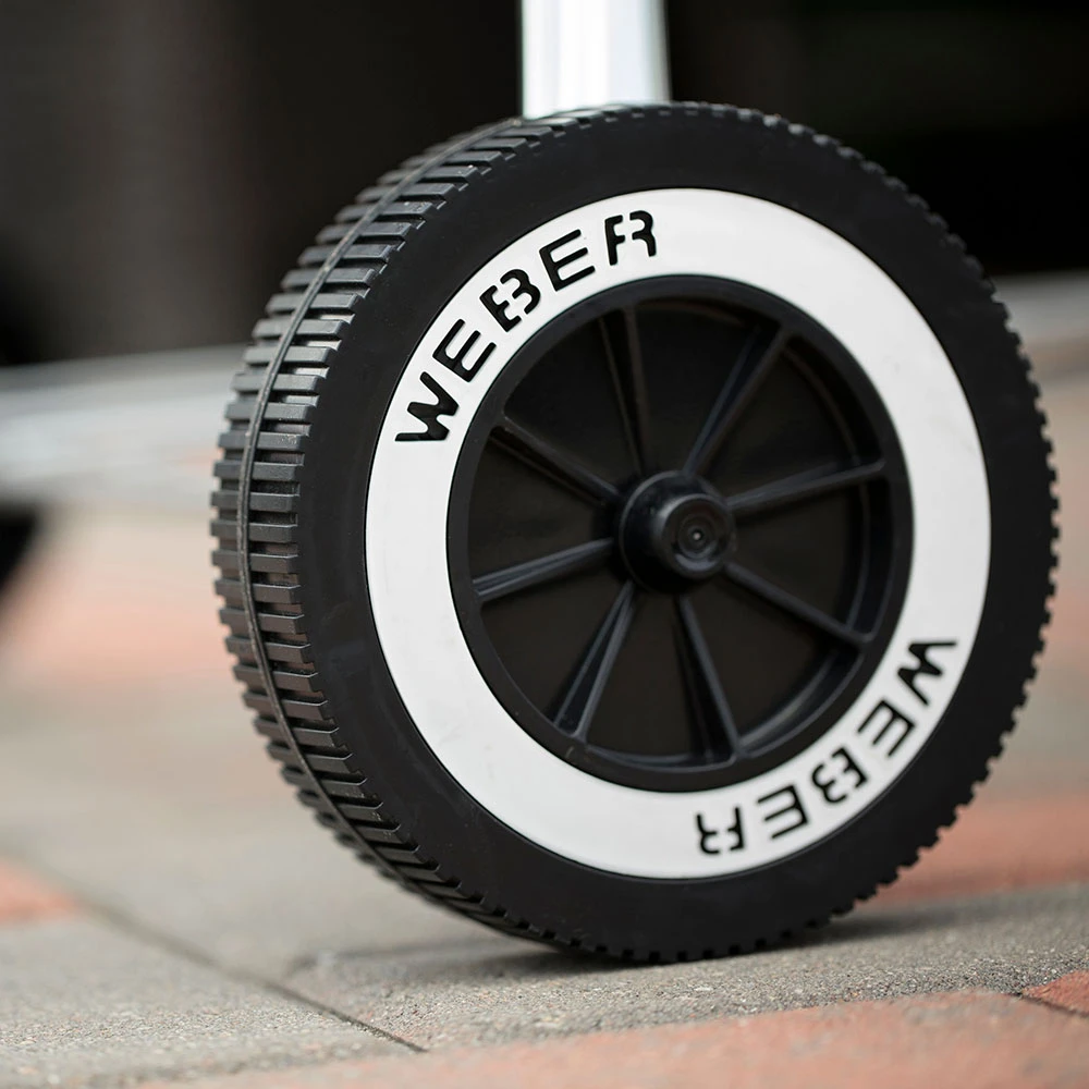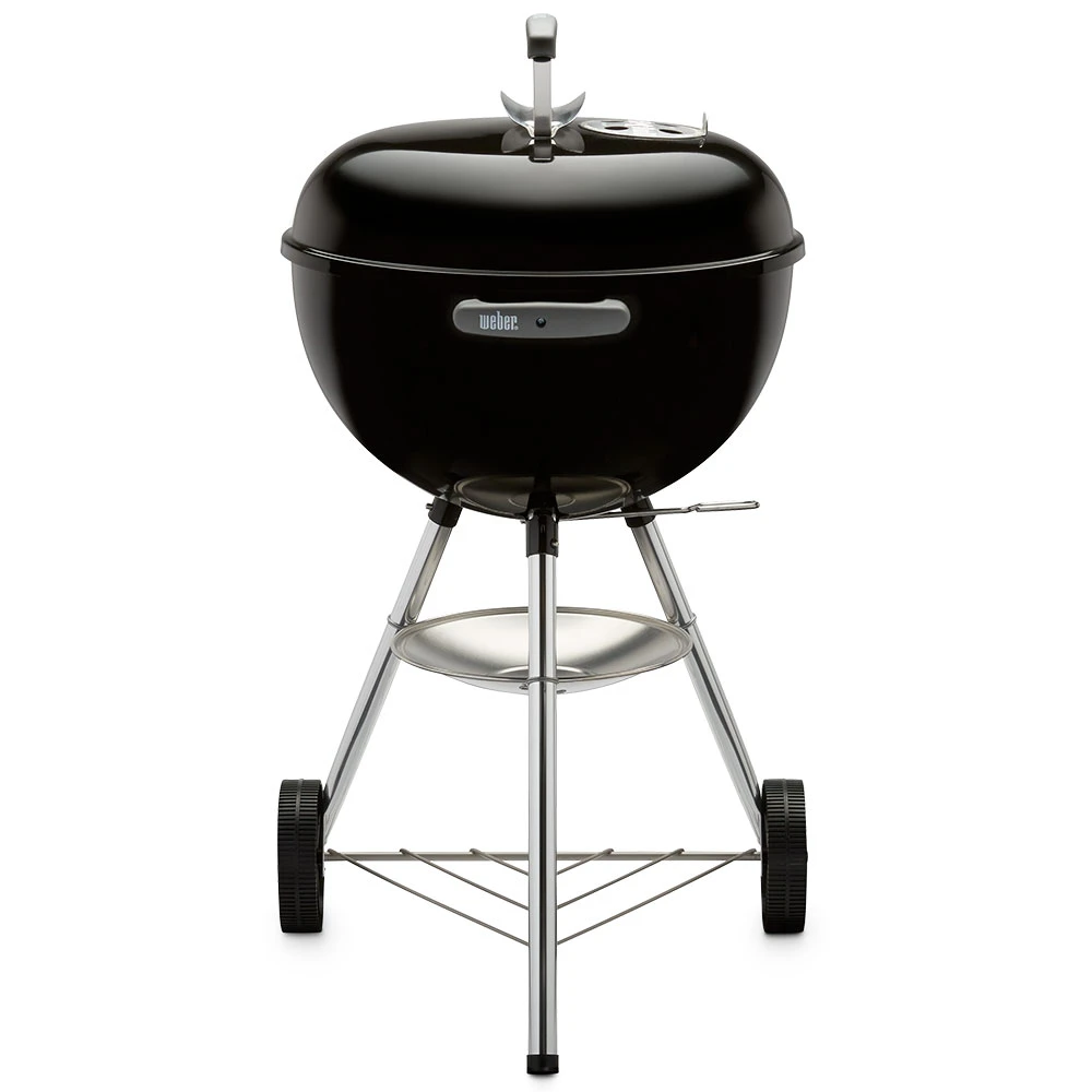 Experience the charcoal revolution that started it all with a Weber kettle-style BBQ grill! Weber kettles combine traditional, iconic design with innovation in production. Made of premium-grade U. S. Steel coated with porcelain enamel inside and out, the bowl and lid of the Weber Original Kettle charcoal grill are precisely formed to allow heat to circulate evenly inside the grill and across the 240 square inches of cooking area. The black porcelain-enamel coating is baked on, fusing the finish to the steel to prevent rusting and peeling through years of use. The aluminized steel One-Touch cleaning system makes clean-up hassle-free. As you rotate the handle, three blades in the bowl move ash through the vents and down into the aluminum ash catcher below. Only the unburned coals remain in the bowl and can be re-lit for your next barbecue, which helps you save money on fuel. The adjustable, no-rust aluminum top vent provides the proper airflow needed for perfect grilling and helps you to control the temperature inside the grill. Weber Original Kettle grills also feature heavy-duty, plated steel cooking grates, two glass-reinforced nylon handles that will withstand the elements for the life of the grill, aluminum legs that elevate the grill to an ideal height for grilling, and two durable all-weather wheels that are virtually indestructible and crack-proof. A classic, dependable design, the Weber Original Kettle charcoal grill is engineered for excellence!
