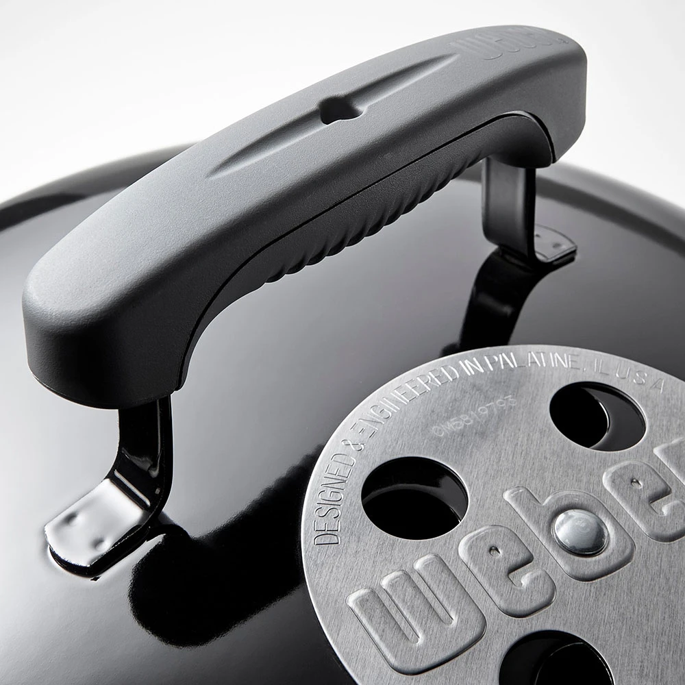 Big fun comes in small sizes! A miniature take on the classic Weber kettle, the Weber Grills 112681 Smokey Joe Premium charcoal BBQ grill helps you grill in style even in tight spaces like apartment balconies and its take-along size makes it perfect for picnics, camping, or tailgating. Made of premium-grade U. S. Steel, the bowl and lid of this portable Weber kettle grill are coated with a black porcelain enamel inside and out that is baked on, fusing the finish to the steel to prevent rusting and peeling through years of use. The adjustable, no-rust aluminum top vent provides the proper airflow needed for perfect grilling and helps you to control the temperature across the 14 1/2-inch diameter cooking area. The Smokey Joe Premium features a lid lock that secures the lid in place for carrying, which lowers to double as a lid holder while you grill. Weber Smokey Joe grills also feature heavy-duty, plated steel cooking grates and a glass-reinforced nylon handle that will withstand the elements for the life of the grill. With the Smokey Joe Premium, you will love its compact size and stylish looks every time you fire it up!